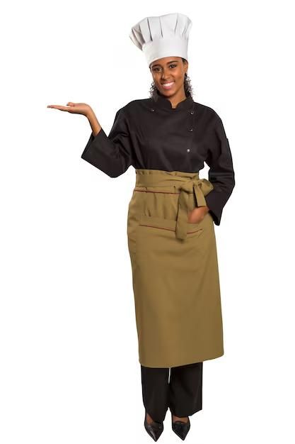 Cet uniforme de chef cuisinier pour femme associe élégance et praticité. La veste blanche à double boutonnage, accompagnée d’une toque traditionnelle, reflète professionnalisme et hygiène, indispensables dans le domaine culinaire. Le tablier marron vient compléter la tenue en ajoutant une protection efficace et un style raffiné. Conçu en tissu résistant et facile à entretenir, cet uniforme assure confort et liberté de mouvement pendant le service.